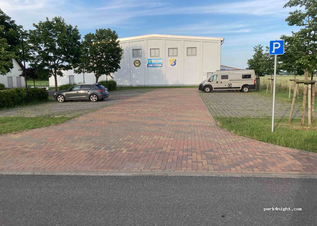 Es ist herrlich ruhig hier (besonders nachts), da abseits gelegen. Es parken tags nur ein paar Besucher des Sportzentrums. Sonst kein Verkehr, vor allem kein Durchgangsverkehr. Am Morgen kamen wenige Autos vorbei, darunter 1 oder 2 LKW, die ihre Ladung an der ca. 150 m weiter südlich befindlichen Kläranlage abluden. Das hat aber überhaupt nicht gestört. Zum autarken Stehen perfekt. Empfehlenswert!