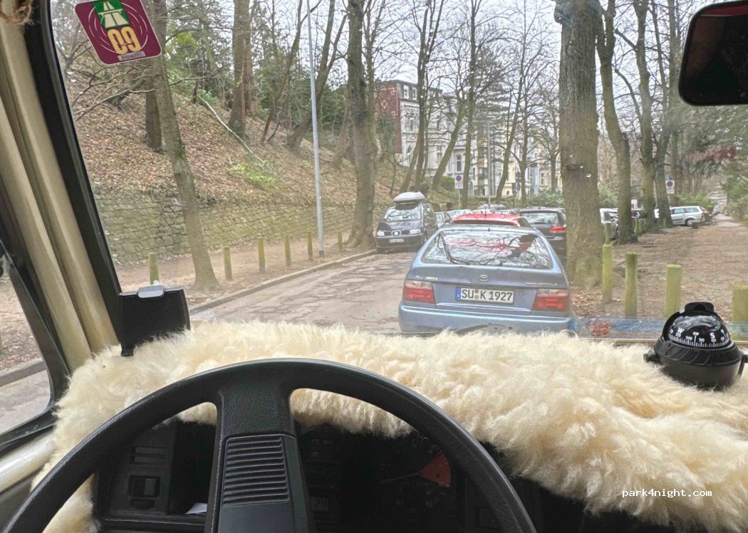 Der Parkplatz war nachts ruhig, morgens laufen viele Jogger oder Hundebesitzer vorbei.