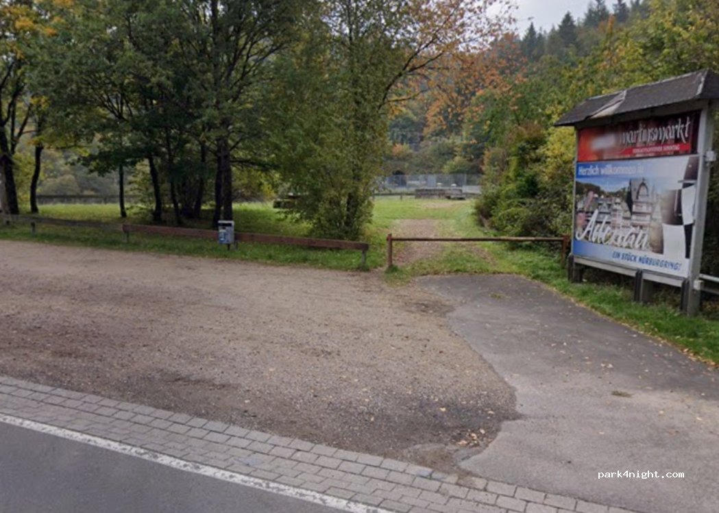 Parking pour une dizaine de véhicules où se trouve une table de pique-nique accessible à pied. Devant il y a un tunnel à 150m où l'on voit le circuit du Nürburgring, c'est un endroit calme pour passer la nuit mais quelques voitures passent.