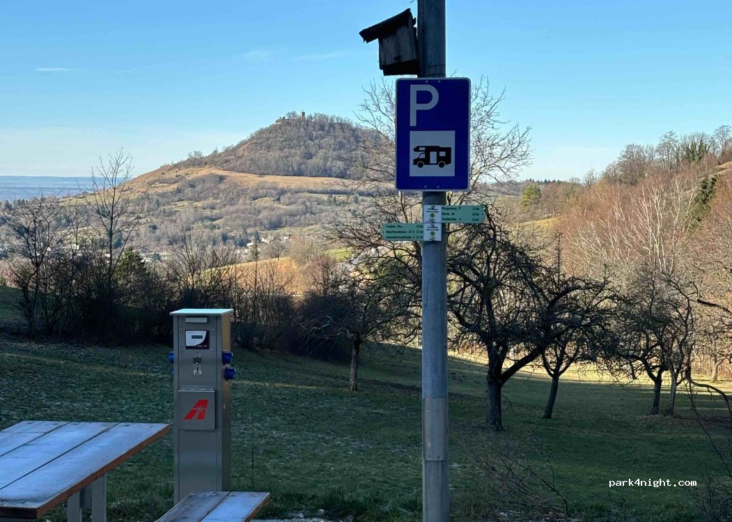 Sehr schöner und ruhiger kostenloser Stellplatz. Strom kostet 0,50€/kw. Sonst keine V/E. Super Ausblick auf die Achalm. Es gibt 2 Rundwanderwege ab Stellplatz (8 u. 13 km). Zufahrt ist komplett neu geteert. Schützenhaus hatte geschlossen (am Wochenende). Am Stellplatz steht gerade ein sauberes Dixi-Klo. Mir hat die ruhige Lage sehr gefallen. Ich komme wieder!
