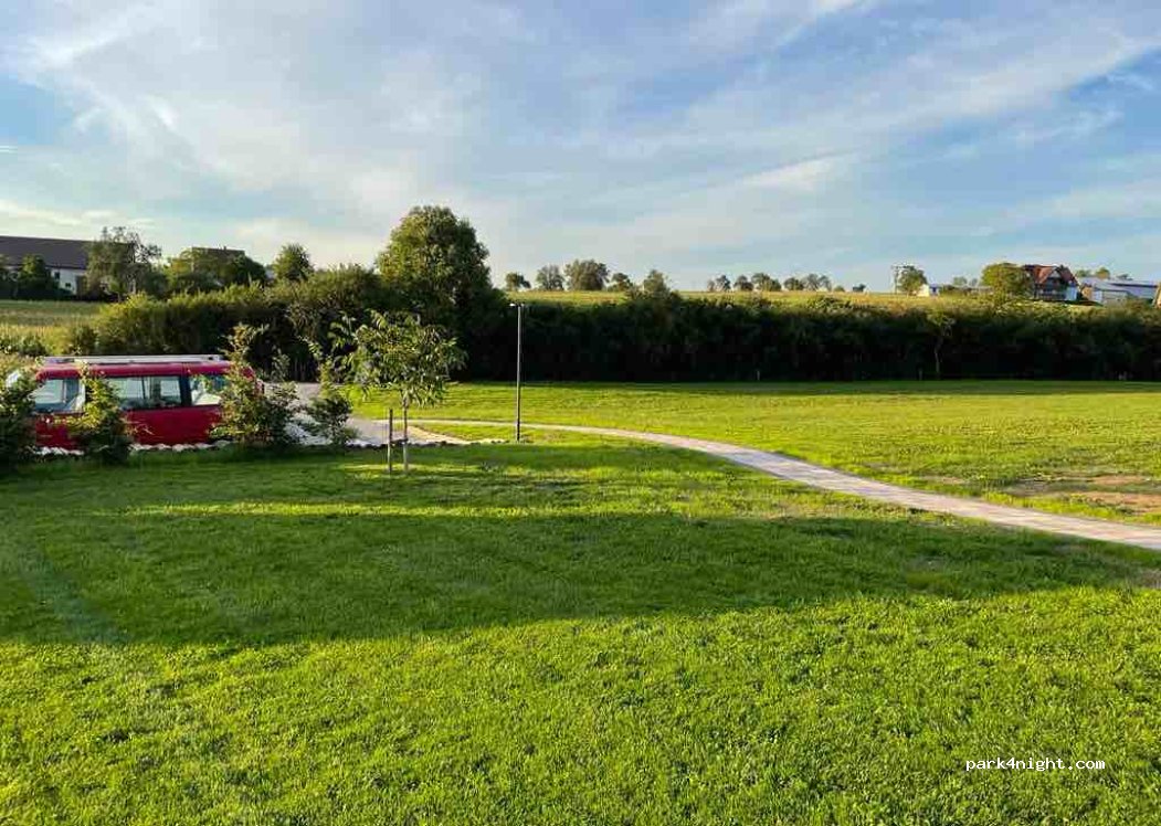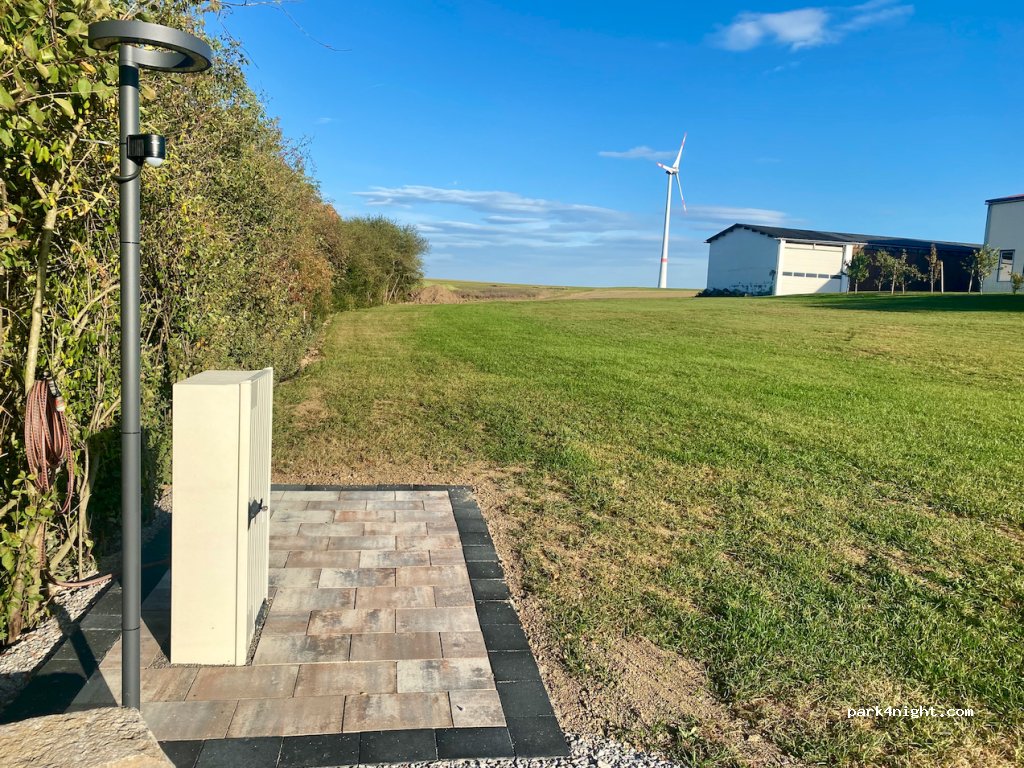 Piccola area camper privata all'interno di una struttura ricettiva di nuova e curatissima. Luogo tranquillo con piacevole vista sui campi, a pochi Km da Rothenburg. Pratico allaccio alla corrente e servizio di scarico acque grigie/carico acque chiare. Possibilità di utilizzo del bagno.4 stelle anziché 5 per la mancanza della doccia. Prezzo per una notte (1 camper, 2 adulti e 3 bambine):24 euro.