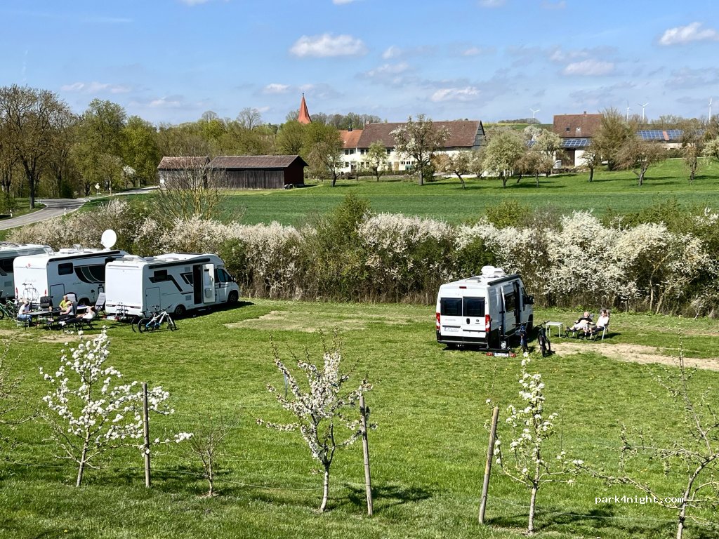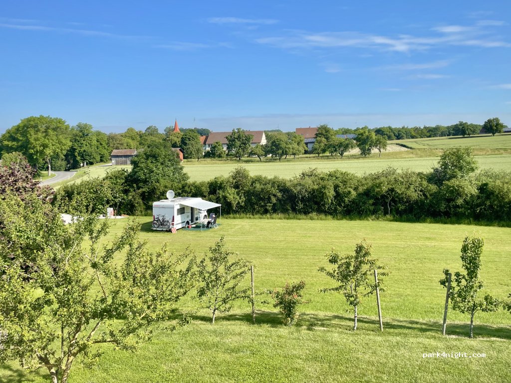 Ein wunderbarer Platz, den wir als Stellplatz genützt haben. Es gibt WC, Wasser- und Stromanschluss, sogar E-Ladestationen! Sehr liebevoll und sauber gestaltet und wir wurden herzlich Willkommen geheißen. Man sieht vom Platz fast bist Rothenburg ob der Tauber, das ganz in der Nähe ist und absolut besuchenswert ist, und bis Dinkelsbühl ist es ca. eine halbe Stunde mit dem Auto!