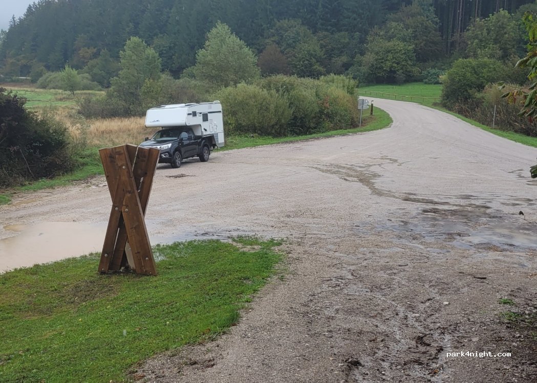 there are plenty of clear designated parking places along the track. Also walks. Here there is walk to an observation tower about 300 m away. I do not recommend staying night.