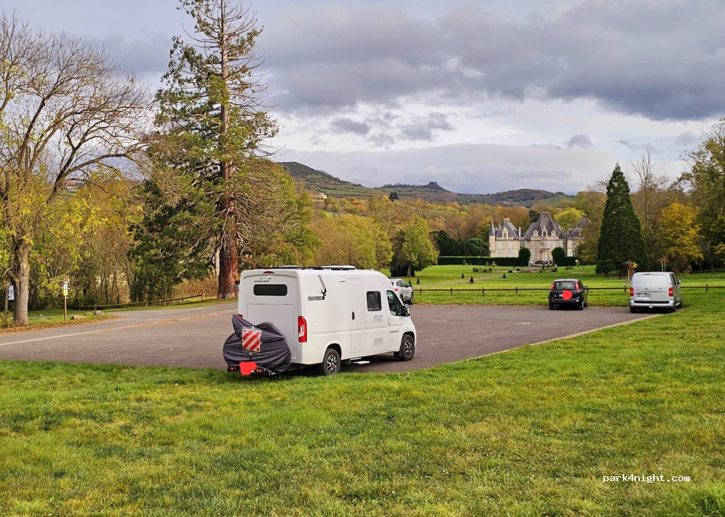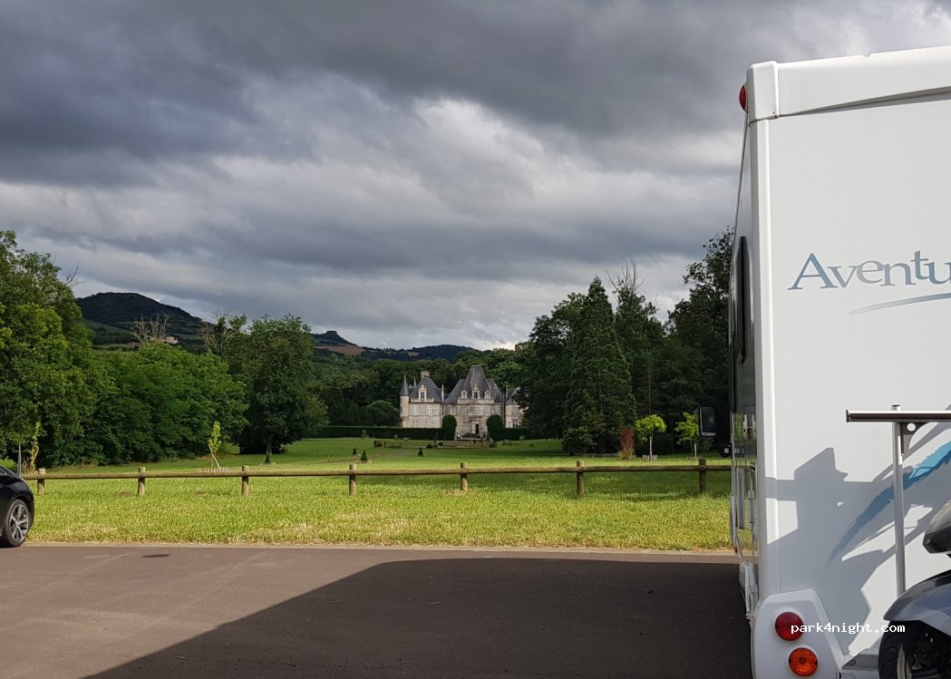 Associative parking on asphalt facing Castle Chadieu in the Puy de Dome (63) Pretty flat. Not far from Longues and Vic le Comte where you will find all shops, big and small. No service on site. You will have to be autonomous. You will find yourself in an idyllic and quiet. This parking also serves the few walkers in the area. A few minutes away you have the Allier salmon river.