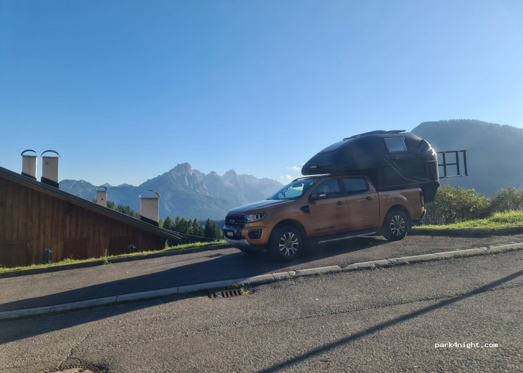 Öffentlicher Parkplatz als Ausgangspunkt für Touren in die Umgebung. Die Leute in der Nachbarschaft sind sehr freundlich. Der Platz ist abschüssig. Nur ideal für Transporter oder sehr kleine Wohnmobile. Nicht für mittelgroße Camper geeignet.