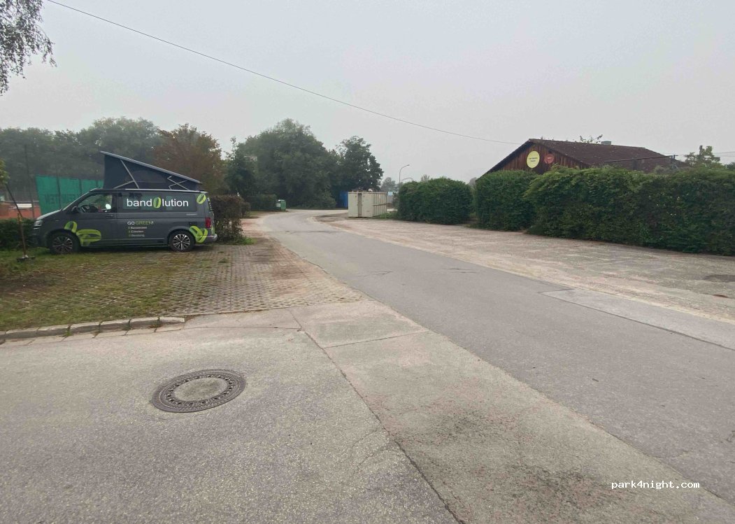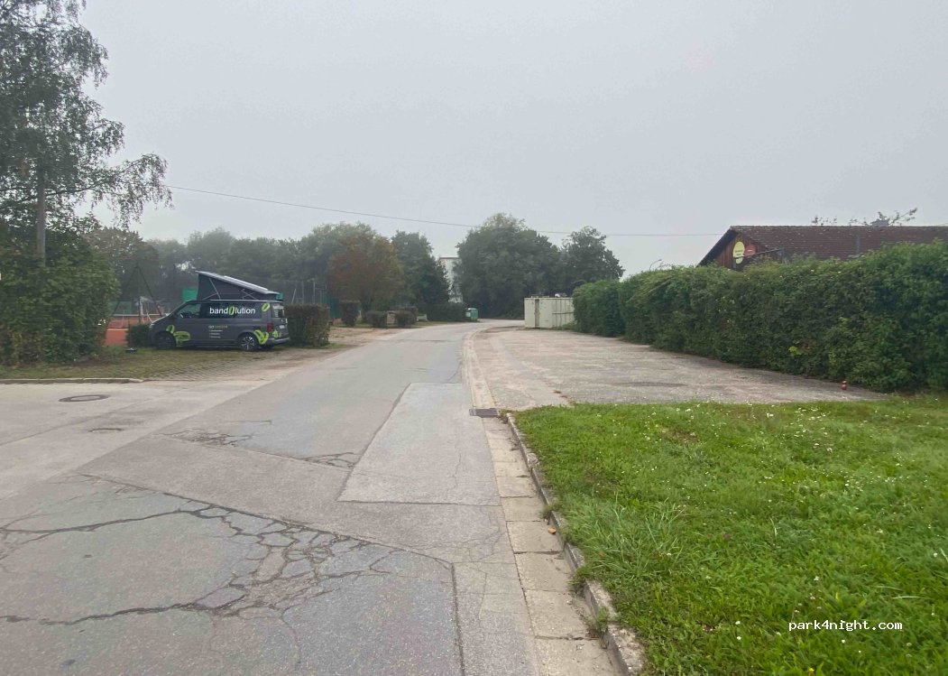 Parkplatz mit 4-6 Parkplätzen. Nachts sehr ruhig. Am Tennisplatz gelegen. Ortseingang von Metten.
