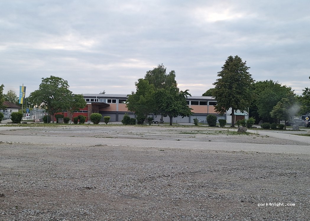Direkt neben dem neu eröffneten Naturbad. Evtl. noch abendlicher Trainingsbetrieb auf dem Fußballplatz, keine Dienste aber perfekt für eine Übernachtung