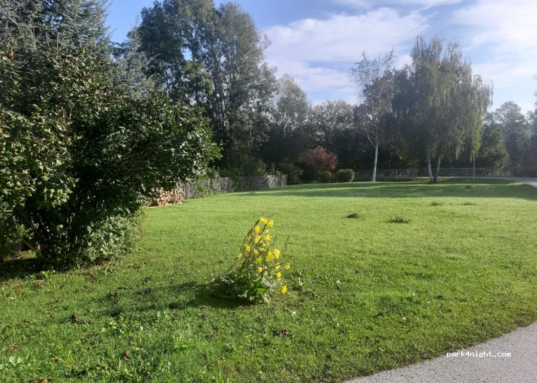 un arrêt fantastique dans une prairie dans un petit village propriétaire tres sympathique et c'est gratuit il y a un petit kiosque pour acheter quelques souvenirs n'hésitez pas .