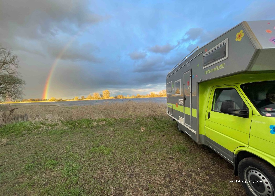 Einfacher Rasenplatz an der (ehemaligen) Gierseilfähre von Arneburg. Null Infrastruktur aber toller Blick direkt an der Elbe. Nach Regen ist der Platz etwas schwer also eher mit < 3,5 Tonnen oder Allrad