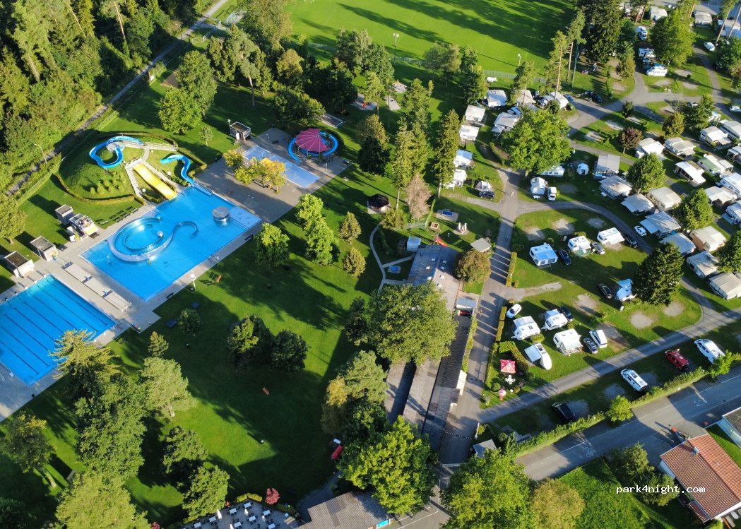 Waldcamping Feldkirch. Municipal campsite with cheap, clean toilets. It has a washing machine. Pitches on nice grass. Motorhome up to 8.6 meters long, no problem (on some pitches!). WiFi throughout the campsite. Free access for campers in the municipal swimming pool attached to the campsite. Possibility to buy bread, sweets and beer at the campsite.