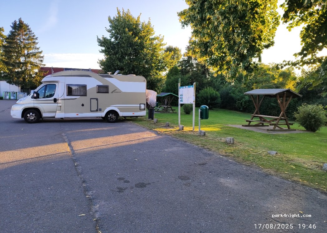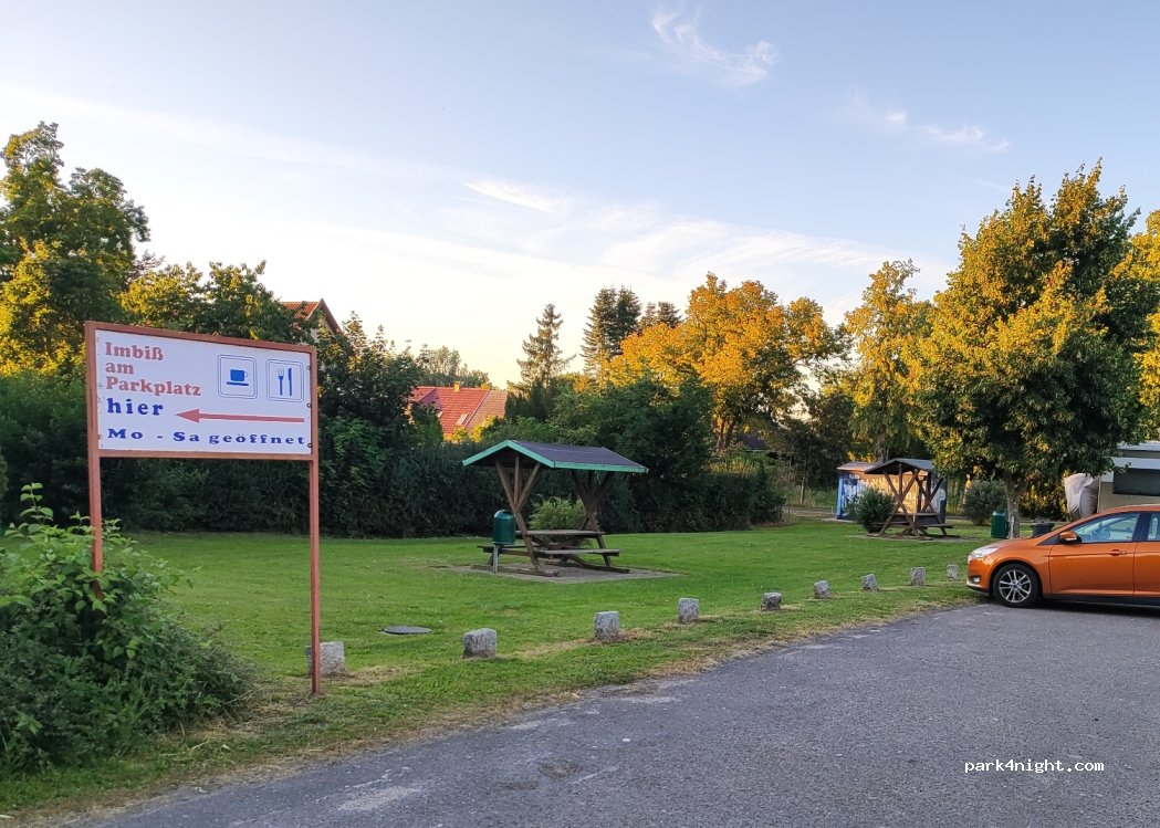 Small parking close to the motorway and next to a main street (not much traffic during the night). Arrived late at night and left early in the morning, so it's perfect for an overnight stay.
