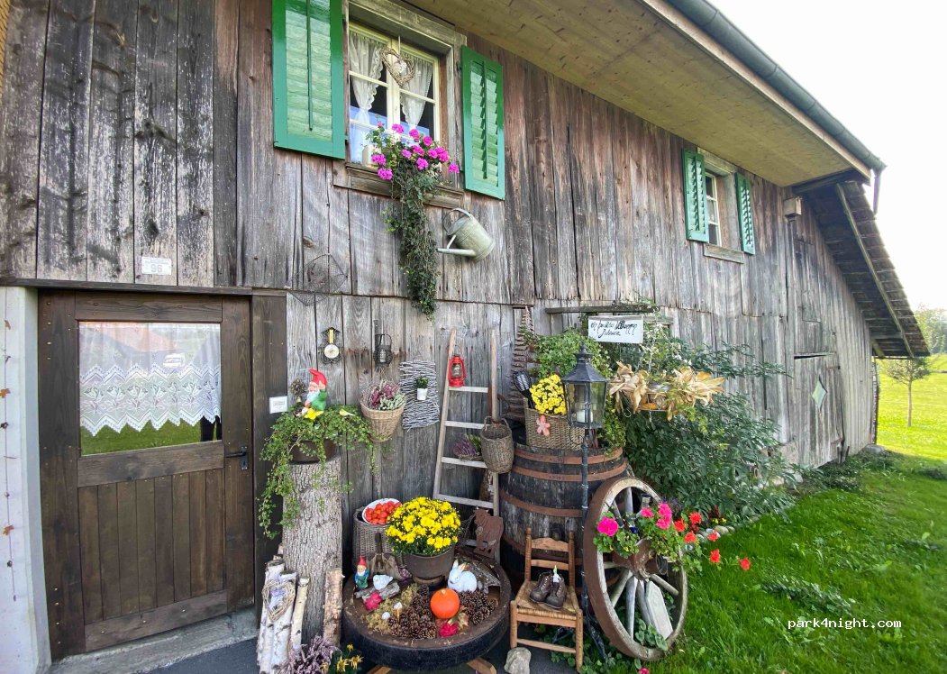 Die zwei idyllischen Stellplätze befinden sich auf dem Gelände des Alp-Panorama-Hofs, der für Nicht-Wohnmobilisten auch noch gemütliche AirBnB-Zimmer anbietet. Neben Strom, einem WC und Grauwasserentsorgung steht auch noch ein liebevoll eingerichteter Aufenthaltsraum mit Kaffee und Kuchen, Brettspielen und Musikanlage plus Holz zum Grillen zur Verfügung (Getränke, Kuchen und Holz sind kostenpflichtig).