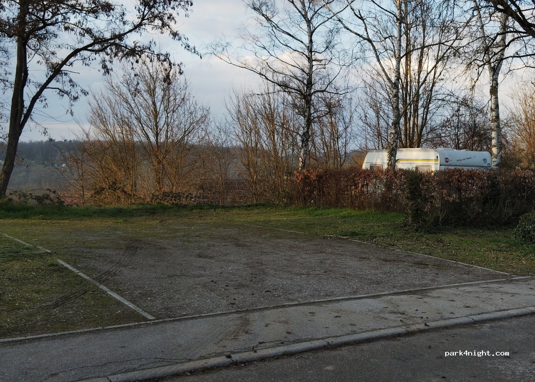 Am Ende der Anliegerstraße. 4 Parkbuchten mit jeweils 2 recht großen Stellplätzen. Plätze sind geschottert mit Gras. Die S-Bahn, die gleich schräg unten fährt hat uns nicht gestört, da sie leise Waggons hat. Der Blick zum entfernten Weinberg war noch frei. Standen eine Nacht hier und waren sehr zufrieden. Danke an Benningen für den Platz. Leider gibt es vor Ort keine Mülleimer.