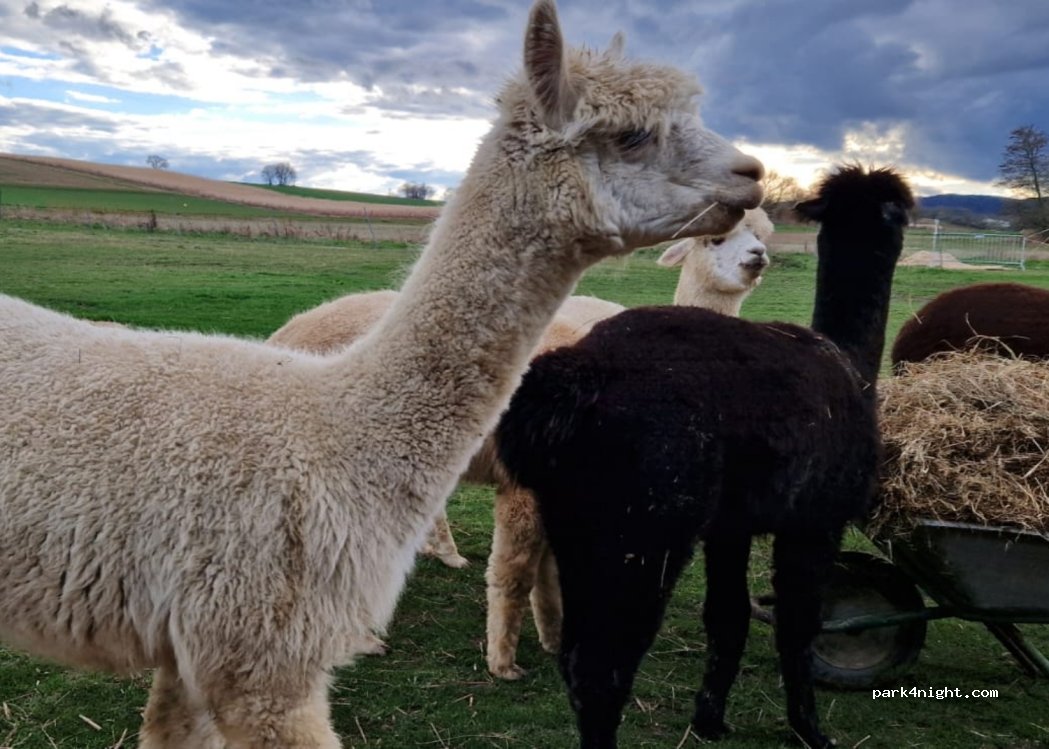 Nice small and quiet parking space on a winery and alpaca farm. Ideal to relax and unwind. The operators Ute and Martin leave nothing to be desired and are there for their guests at any time. In addition to very good wines, there are various offers with and around alpacas. There is a vending machine farm shop that offers various regional products. In addition to the wine, fresh milk and ice cream are particularly recommended here.