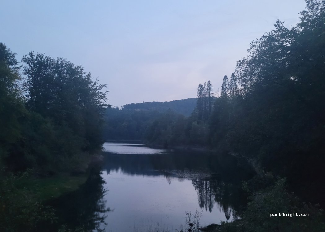 Très bel endroit au milieu de la forêt. Arrivés tard, nous n'avons croisé personne. L'endroit est tout petit et convient à un seul van ou voiture. Le chemin forestier est facilement pratiquable par temps sec, même s'il y a quelques nids de poule. Nous sommes entrés par le nord, la barrière forestière était levée depuis la route principale. Joli lac et vue sur la forêt, très calme !