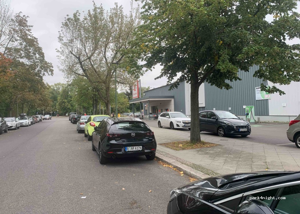 Easy and free parking directly at Prenzlauer Berg, opposite a Kaufland and outside the environmental zone. There is a customer toilet in Kaufland. Many cars park here during the day, but it is very quiet at night. Kaufland closes at 10 p.m.