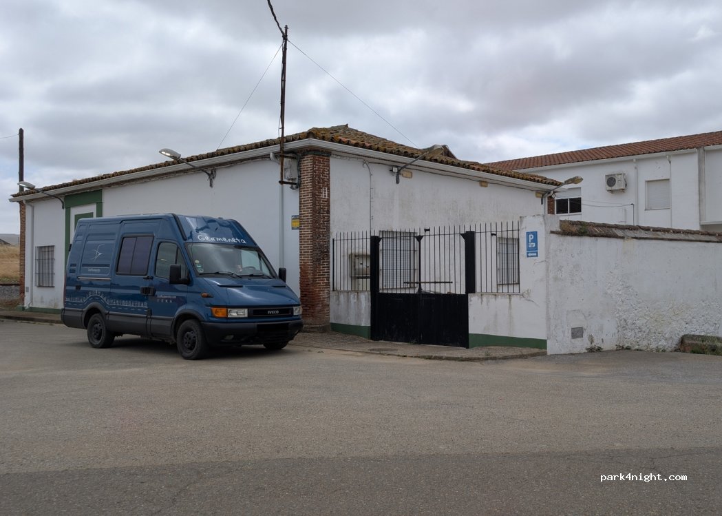 Very quiet peaceful parking area despite being next to the children's play area. Close to the village centre where there are a couple of welcoming Bars and a Panaderia (open Sunday's). The village itself is a typical Extremedura village but beautifully kept. Not touristy. The locals take a lot of pride in their village. There are no facilities at the site but overnight parking is allowed.