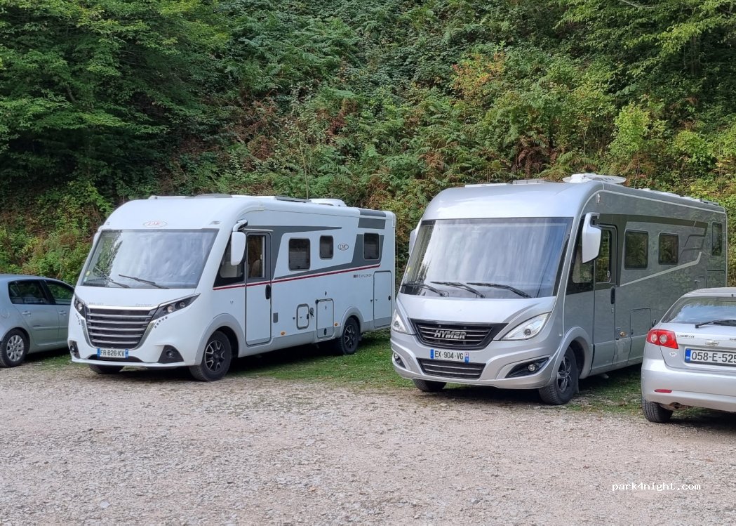 Stabilisé, de niveau et accessible à tous les gabarits, ce stationnement à partager avec les voitures est agréable et calme surtout en fin de journée.