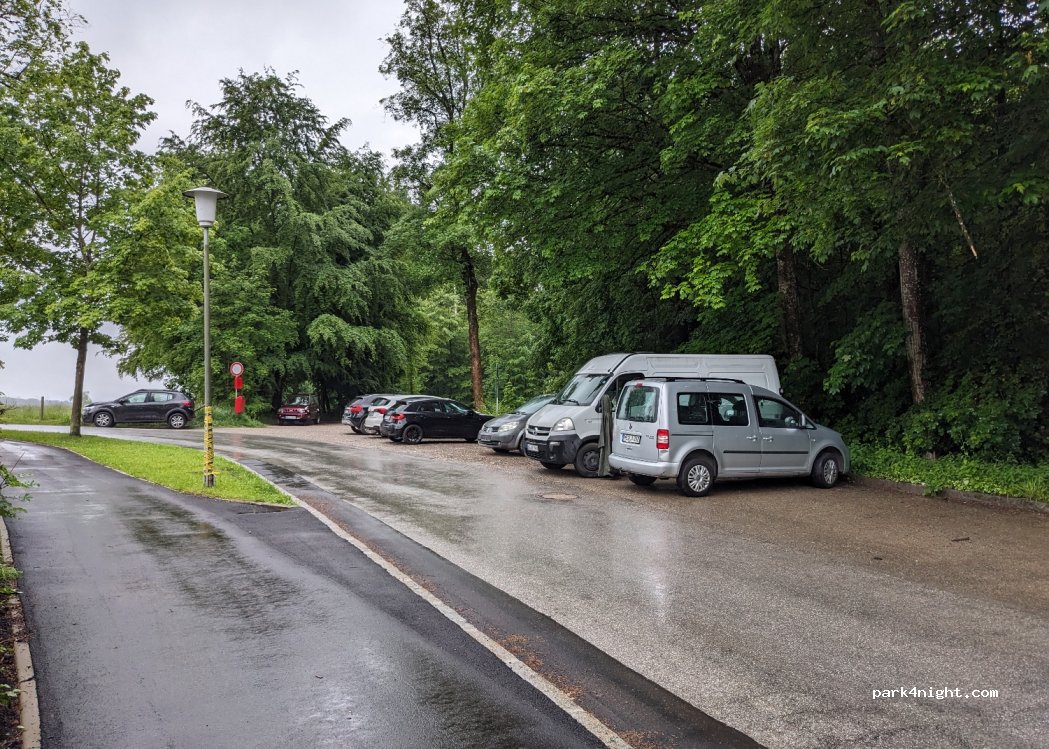 A hikers' parking lot/residents' parking lot on a slight slope. Warning! Only for short and small campers (max. L2H2). Access is prohibited at the top of the turning circle and only locals park there temporarily to walk their dogs - so please do not stand there. Otherwise, it is quiet.
