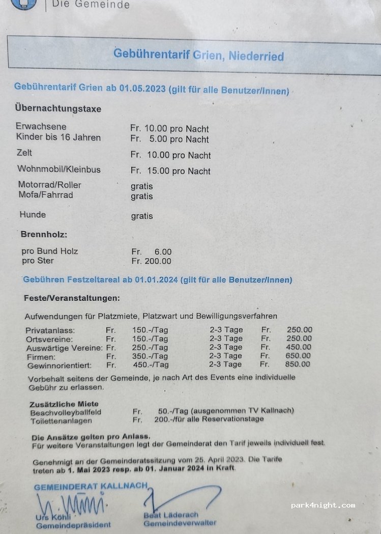 Der Wohnmobilbereich ist mit einem Serviceterminal (Boxenentleerung, Grauwassernetz, Strom und Wasser) ausgestattet. Den Besuchern stehen Duschen und Toiletten zur Verfügung. Es ist nicht möglich, einen Wohnmobilstellplatz für einen Aufenthalt von 1 bis 3 Nächten zu reservieren. Wir laden Sie ein, uns telefonisch oder per E-Mail zu kontaktieren, damit wir Sie über den aktuellen Status der Stellplätze informieren können. Die Bezahlung erfolgt über einen QR-Code (Twint, Parkingpay, VISA, Mastercard, Postcard, Googlepay, Appelpay, American Express) mit dem Smartphone.