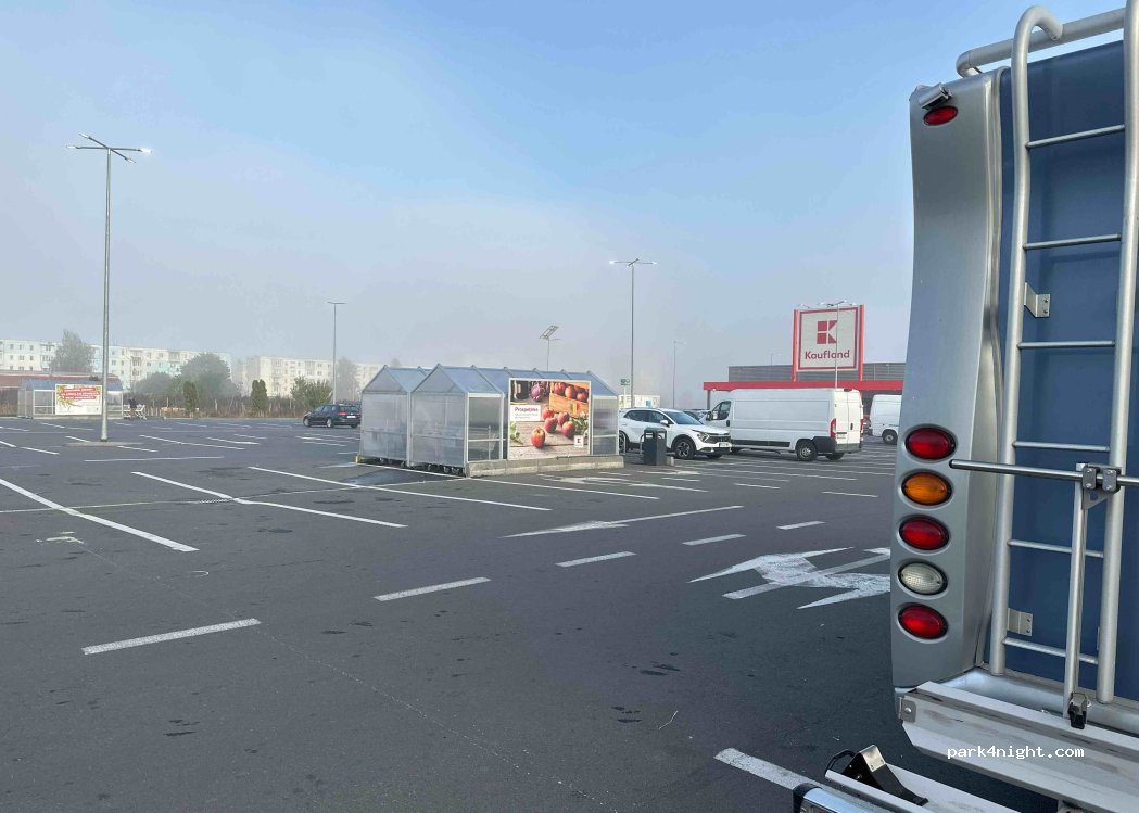 Der Parkplatz bei Kaufland. Nachts war es etwas laut, aber trotzdem ein sicherer Ort zum Übernachten. Morgens kommen die Leute zum Einkaufen, also wieder ein bisschen Bewegung.