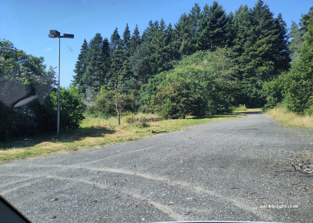 Parking randonneurs, en partie un peu en pente, mais facilement nivelé. Gravel, en lisière de forêt, très belle vue vers Gießen à travers le pays. À environ 200 m de là se trouve un ancien hôtel, maintenant peut-être des réfugiés ?