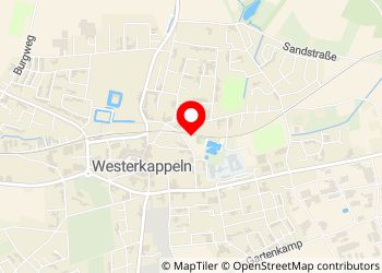Kostenloser PKW-Parkplatz am Rand eines Wohngebieten nahe dem Zentrum von Westerkappeln mit zwei ausgewiesenen Stellplätzen für Wohnmobile.