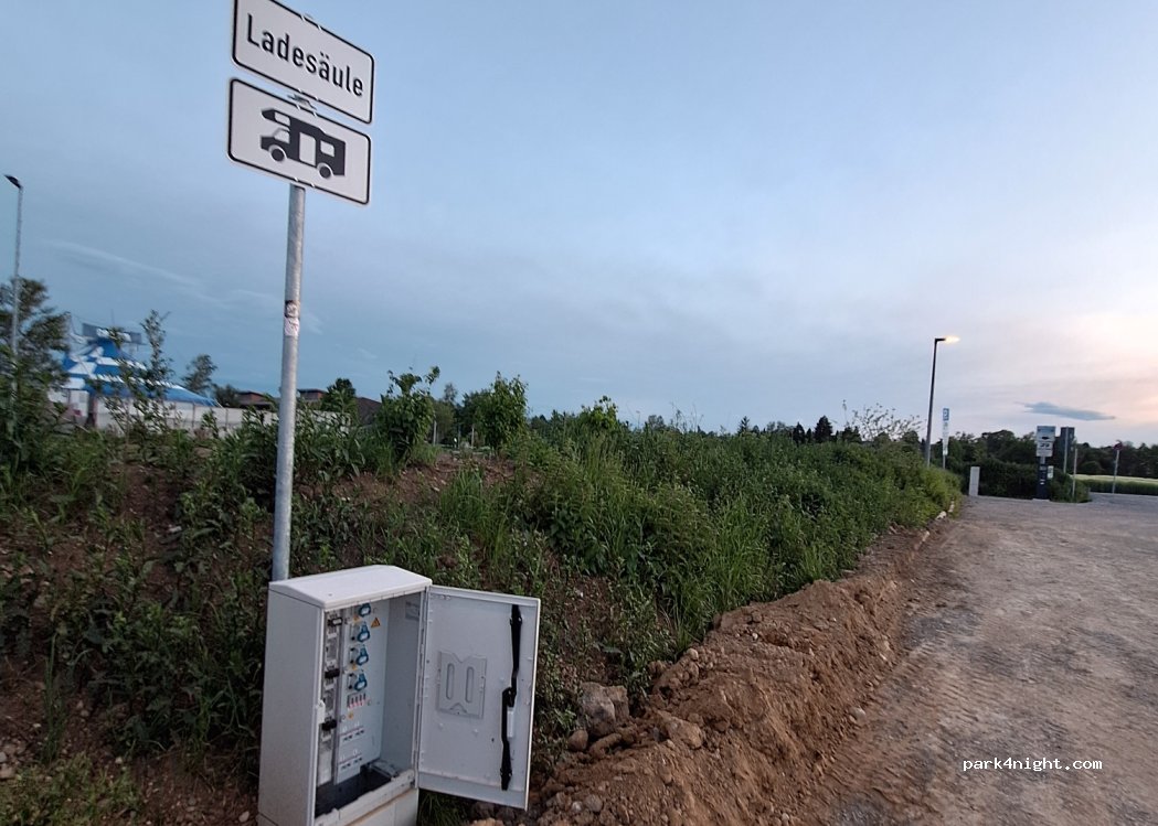 Please note there is room for 10 motorhomes,of which 4 can have electricity from a central box. There is still no water or anywhere to get rid of either grey or black waste. There are 2 small bins for general rubbish. It's a 15 minute walk to the station,to Munich €9.70. The open air pool nearby is open until 8pm (weather permitting). Pay only by coin or parkster app till midnight so wrong setup!