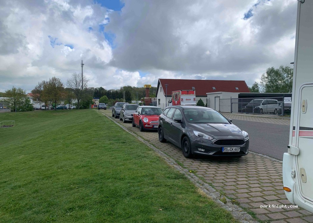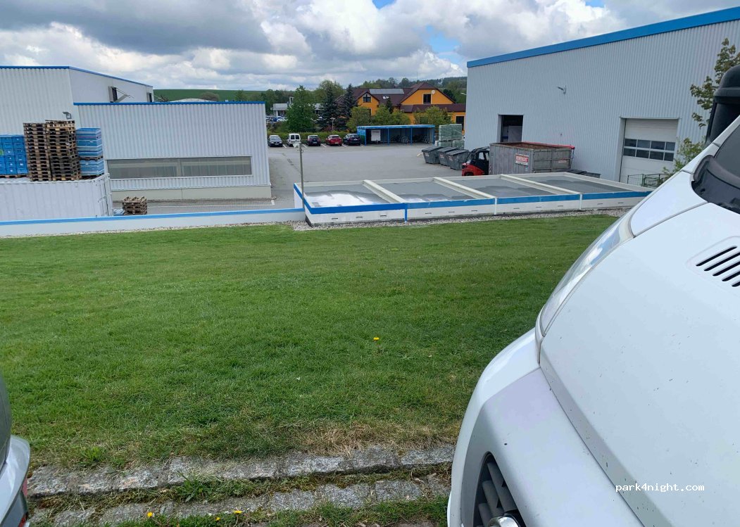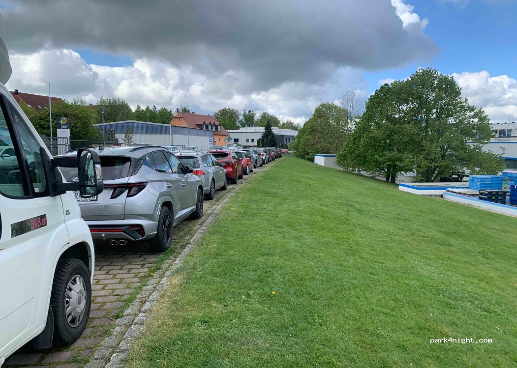 Mehrere Parkplätze an einer reinen Gewerbegebietsstr. Hier steht man ruhig und kostenlos. Für eine Zwischenübernachtung teicht es aus, wenn man autark sein kann.