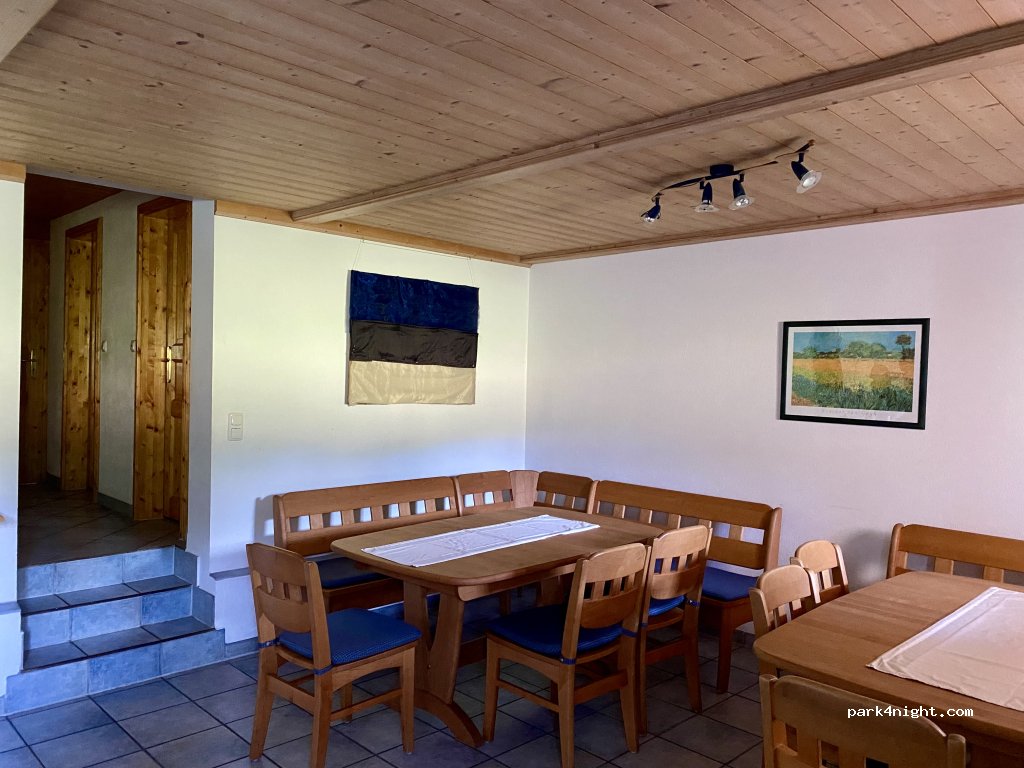 Er verfügt über einen Aufenthaltsraum mit Küche und Essbereich, sowie Dusche mit WC.