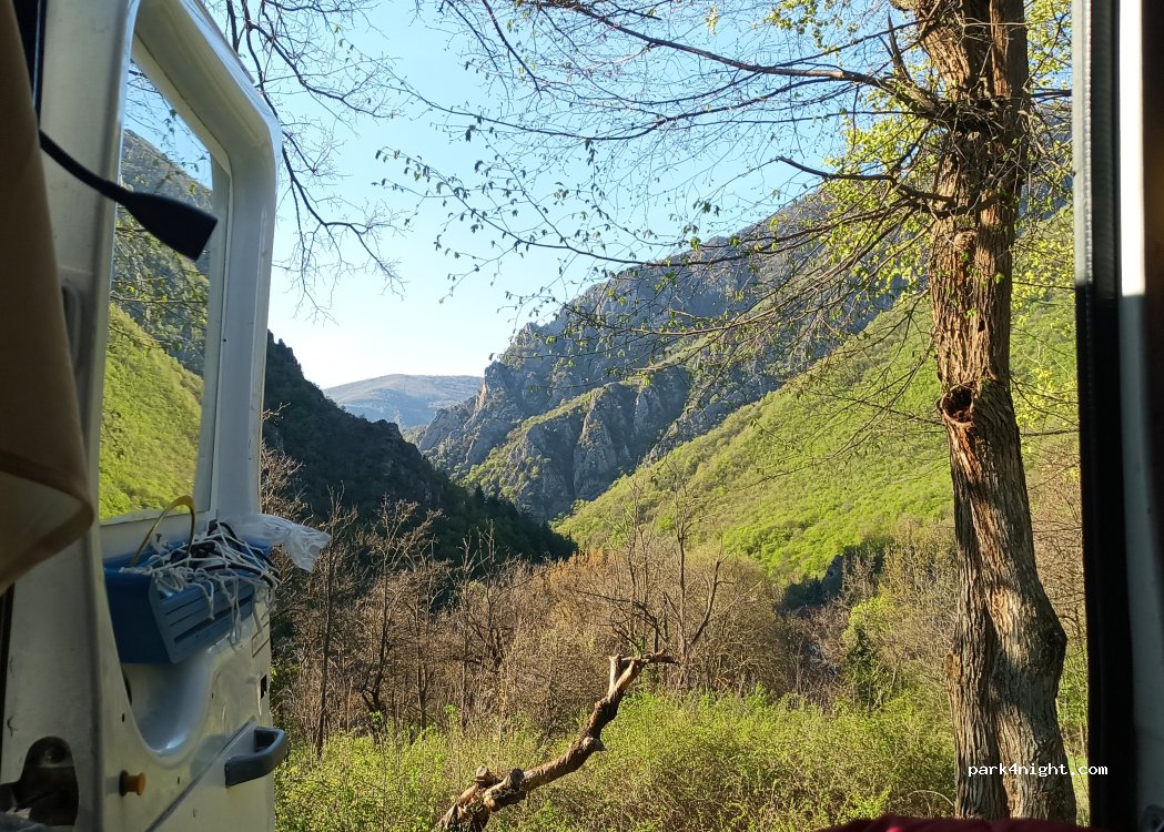 We stayed here for 2 nights as a base for visiting Matka Canyon. Nothing special, but it's pretty much the only option available. At this time of year, we were practically alone here. Probably busier during the summer months. It's best to go up the road closest to the Canyon, otherwise you'll pass a lot of low-hanging branches, and our solar panel wasn't too happy about it...