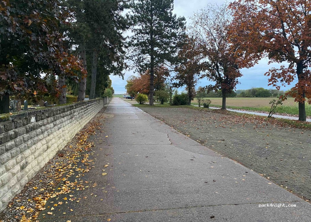 Parkplatz am Friedhof. Im vorderen Teil Straßenlärm, die hinteren Plätze sind ruhiger. Auch für größere Wohnmobile befahrbar. Eine Toilette gibt es im Friedhof (zur Sommerzeit). Einkaufsmöglichkeiten ca. 5 Minuten zu Fuß entfernt.