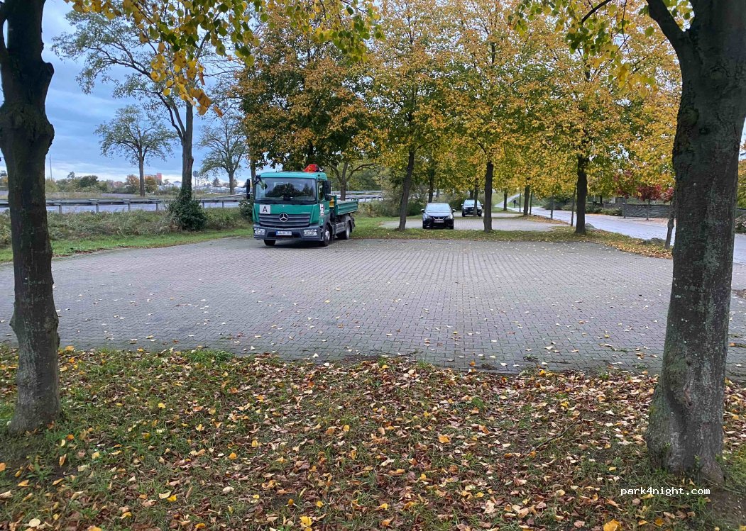 Perfekter, sehr ebener Platz für eine ruhige Übernachtung im autarken Reisemobil (auf dem hinteren Teil des Parkplatzes, weg von der Straße).