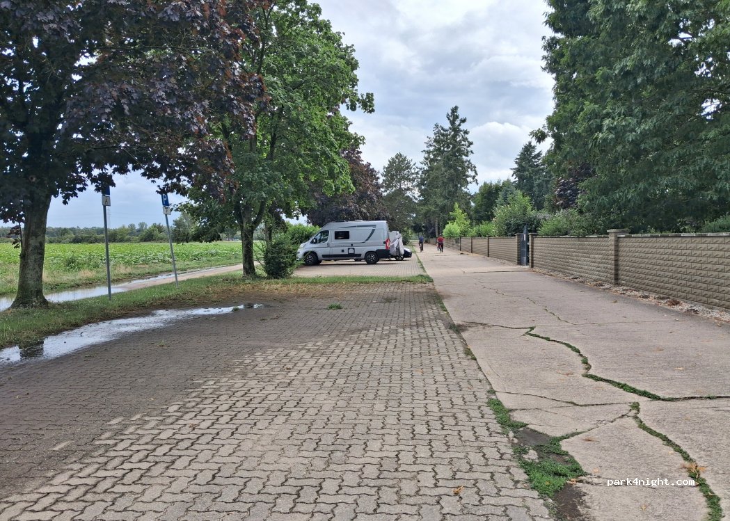 Toller Platz, wir standen auf dem hinteren Teil. Toilette im Friedhof nutzbar. Allerdings, zumindest am Wochenende, viele Fahrräder unterwegs. Haben uns jetzt aber nicht wirklich gestört.