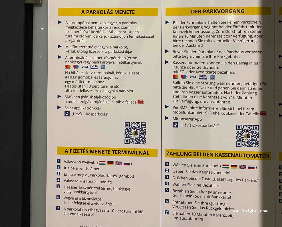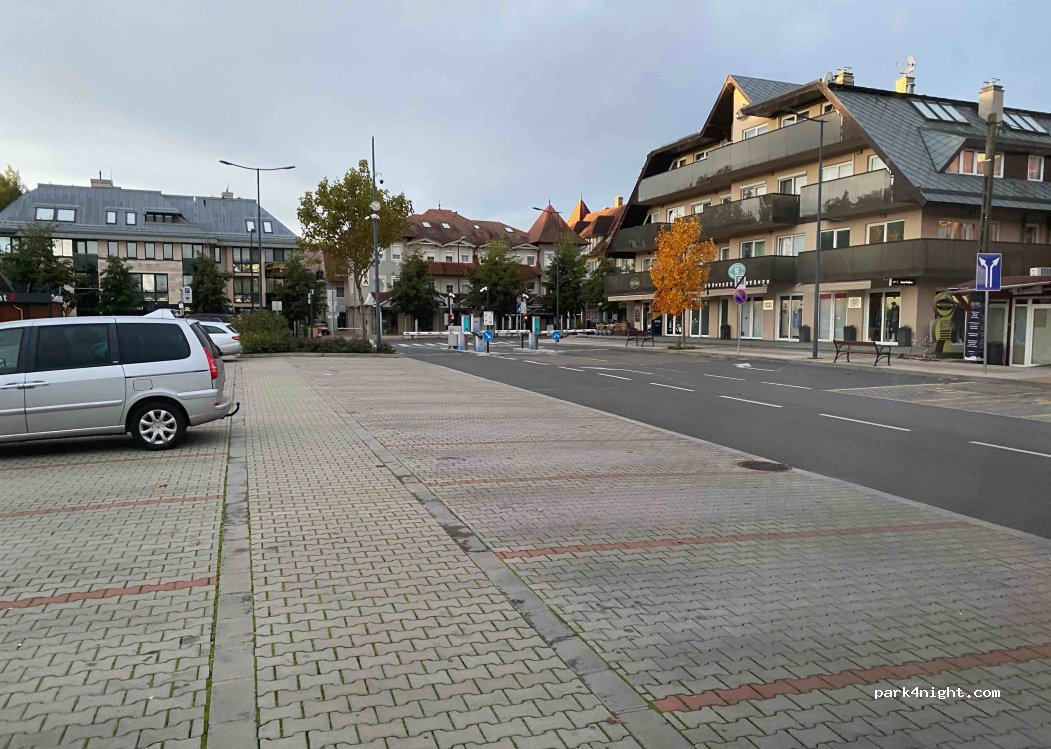 Paid parking with a large barrier next to the Hèvizi thermal bath. Only to be paid from 8:00 a.m. to 18:00 p.m