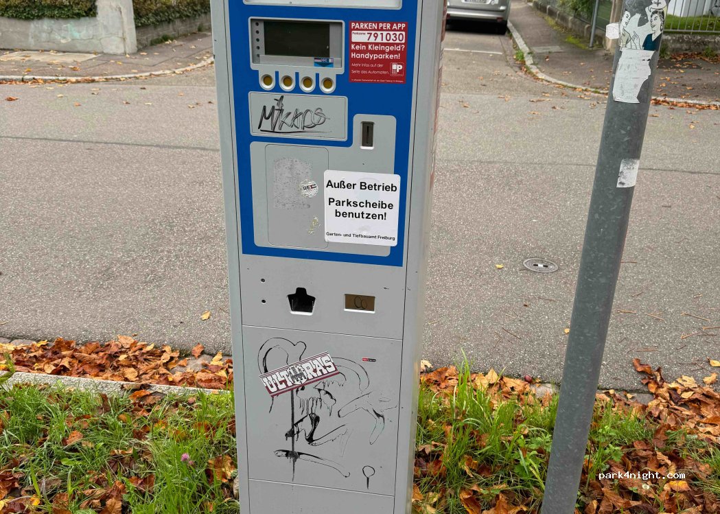 Weiter hinten ist dank kaputten Automat umsonst. Parkscheibe auslegen.