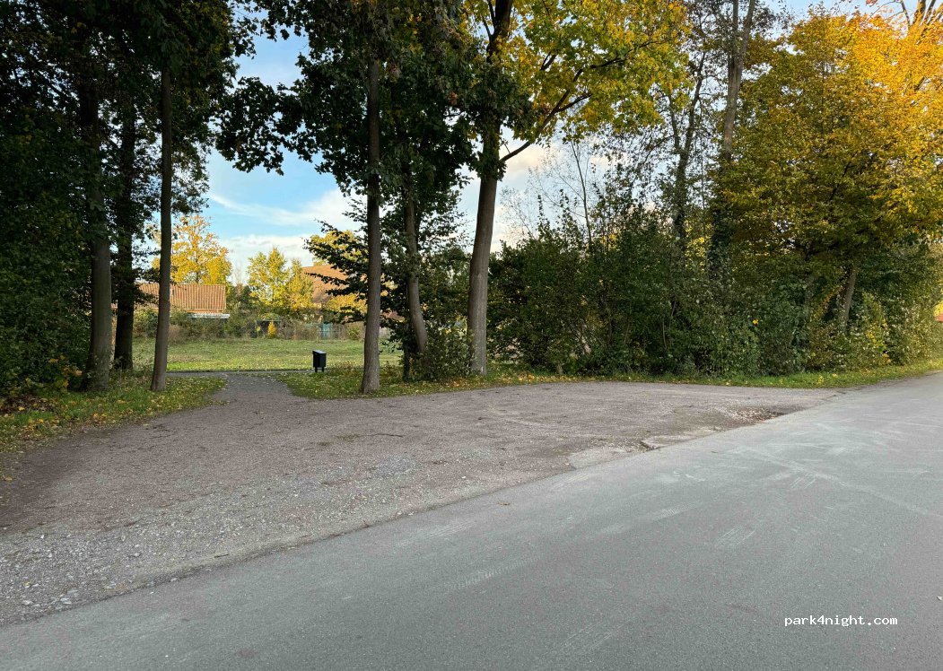 endroit calme et plat parfait pour la nuit. nous y avons passé une nuit tranquille. boulangerie à proximité. il y a une rivière et un chemin de balade juste à côté. plutôt adapté pour les petits et moyens véhicules. notre camping car fait 8 mètres et c'était tout juste pour laisser de la place pour les voitures des promeneurs locaux qui viennent avec leur chien.