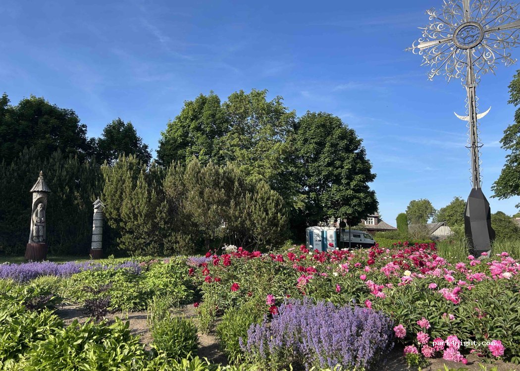 Ein ruhiger und schöner Ort in der Nähe der Sommerbühne und des Flusses.