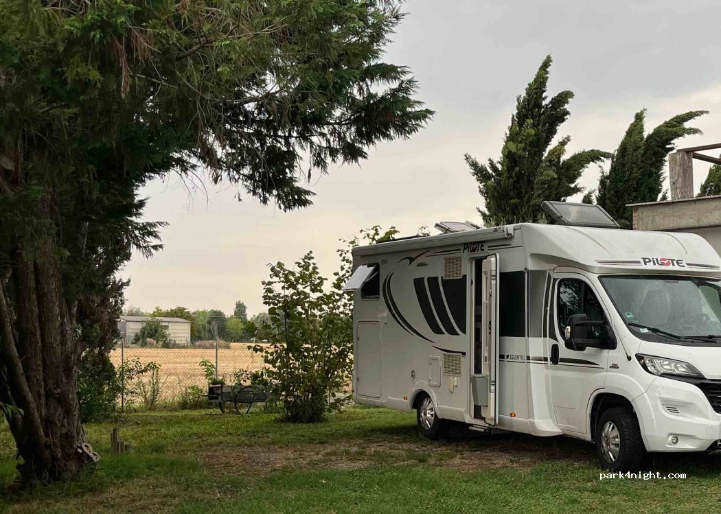 Excellente étape pour Bologne. Accueil très chaleureux de la propriétaire. Eau, électricité, wc-douches. Très sécurisé , à l'intérieur d'un jardin clôturé. Je recommande cette halte sans réserve.