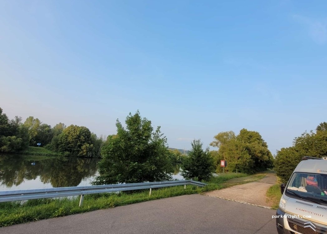Parking on the banks of the Main, space for eight vehicles. Unfortunately, you can hear the highway and the road always a little.
