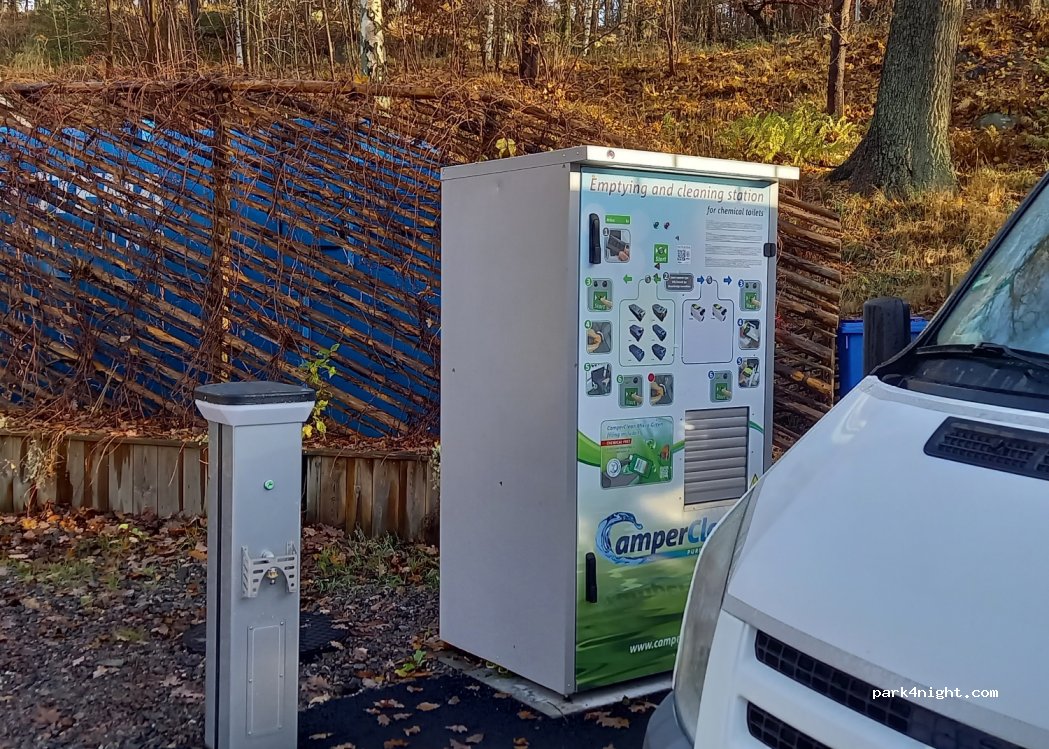 Super Möglichkeit alles zu entleeren und aufzufüllen. Ein Highlight ist das Toiletten- Reinigungsgerät. Ein großes Dankeschön an den Besitzer. Allerdings empfehle ich es nicht für große Wohnmobile. Da es die gleiche Einfahrt zum Campingplatz ist, stehen einige auf der Check-In-Spur, was das Rangieren fast unmöglich macht.