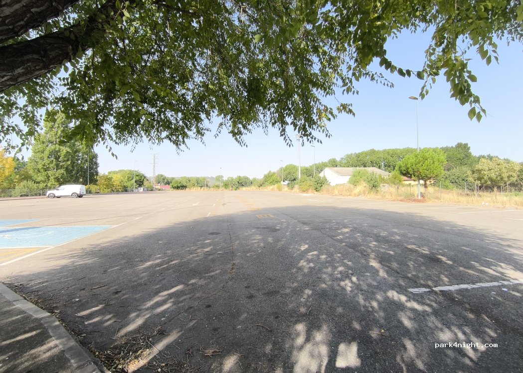 Parcelas ideales para una escala nocturna. Fácil y directo acceso por autovía. Marcaje reservado y consecuente de parcelas para autocaravanas en el suelo (aparcamiento de asfalto). Sin limitación de altura. Supermercado Carrefour a 350 m