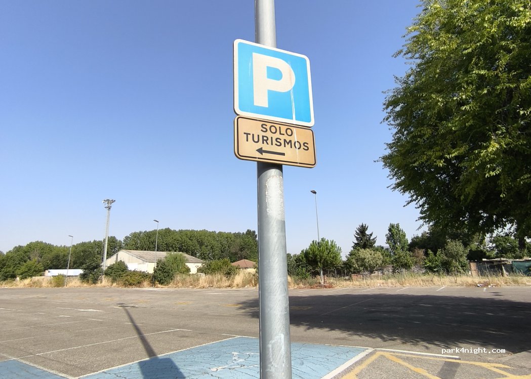 Párking gratuito. Indicación de zona para aparcar turismos y en el suelo indicaciones para aparcar autocaravanas. Lugar de fácil acceso desde la autovía A-67 tiene cerca un bar, mercadona y centro comercial con un carrefour. Zona verde para pasear perros con parque infantil, contenedores y carril bici. Es una zona muy tranquila y silenciosa. Perfecto para pasar una o varias noches.