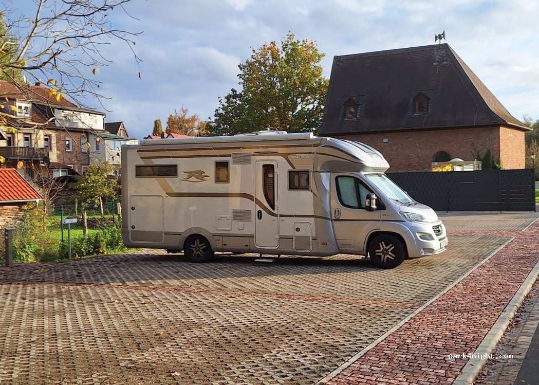 Schöne ruhige Nacht hier verbracht! Zufahrt über "An der Burgmühle" 7,5m × 2,4m WoMo passt super! Im Sommer wird hier wohl eine Menge Action sein! -1* = Strom bezahlt, man sieht aber leider vorher nicht, ob die Anschlüsse (Nr. 7 und 8) funktionieren. 2€ der Stadt geschenkt. Der 3. Versuch war dann erfolgreich!