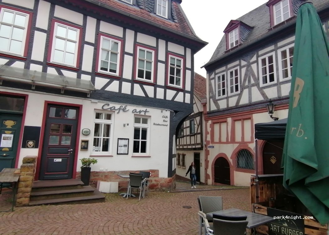 Gelnhausen hat eine sehr schöne Altstadt in "Hanglage". Über Tag recht laut, aber da ist man die Kaiserpfalz entdecken. Ende Juni ist der Platz gesperrt!