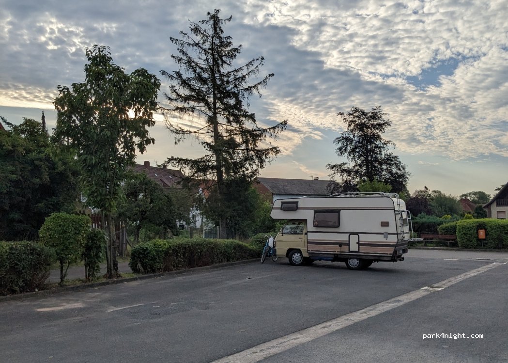 Auf dem Parkplatz des Sportplatzes werden schon seit geraumer Zeit durchreisende Vans und kleinere Wohnmobile geduldet, solange nicht der gesamte Parkplatz dadurch belegt wird. Max. Aufenthalt 48 Stunden. Es gibt zwar keinerlei Services, aber um die Ecke ist ein Netto mit Bäcker und das Umfeld ist in der Nacht ruhig. Am Wochenende treffen sich in der Nähe manchmal Jugendliche, aber bisher ohne Vorfälle.