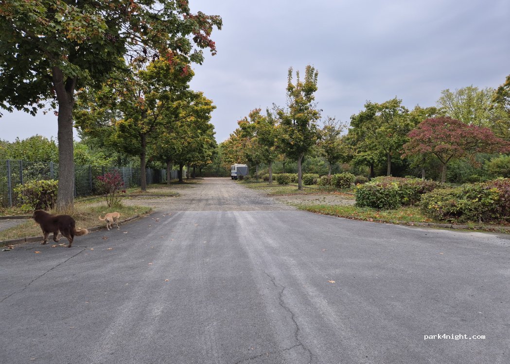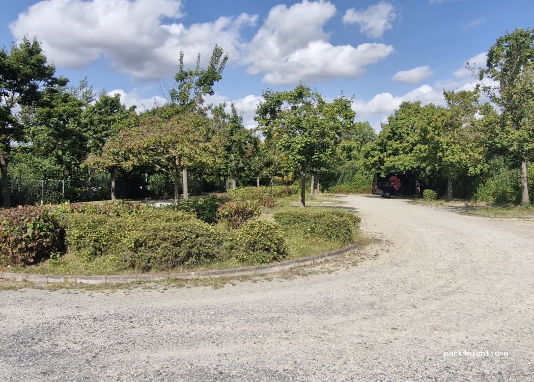 Parking près de l'emplacement. Endroit intéressant pour une nuit. Le côté droit du parking est rarement visité et est vide et adapté aux campeurs. Malheureusement, il y a du bruit provenant de l'autoroute.