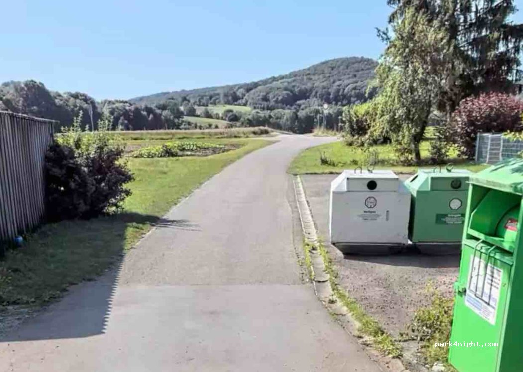 Eigentlich ist nur der ganz äußerstes Parkplatz attraktiv. Die Plätze vor den Containern sind zu nah an den Häusern. Leider standen gestern mehrere Baustellenfahrzeuge auf den hinteren Plätzen. Weitergefahren.