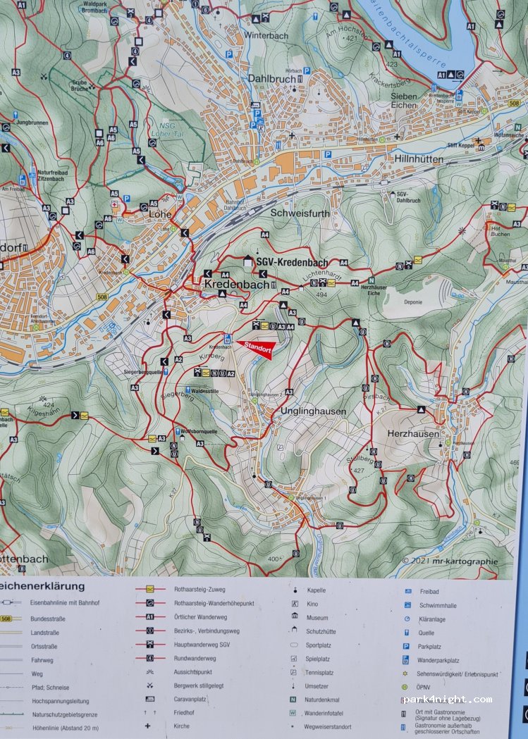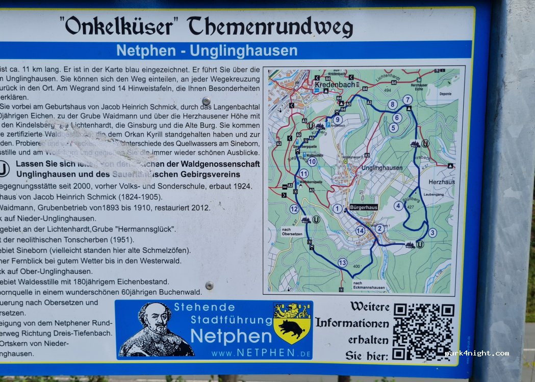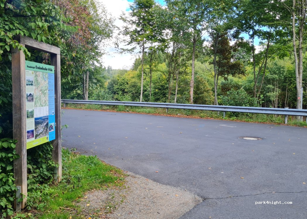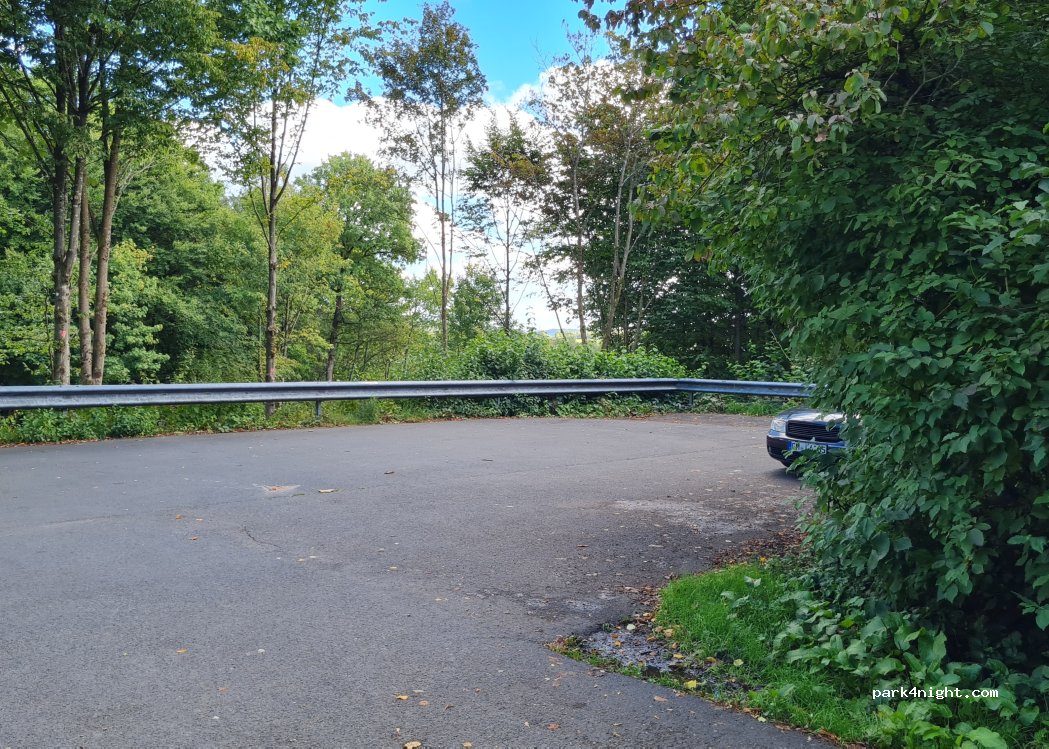 Kleiner versteckter Waldparkplatz der sich als Startpunkt zum Radfahren und Wandern anbietet. Tagsüber Verkehr an der unterhalb liegenden Straße der Abends ruhiger wird. Von der Straße den Weg hoch fahren, sofort links fahren und nochnals lins auf den Parkplatz.