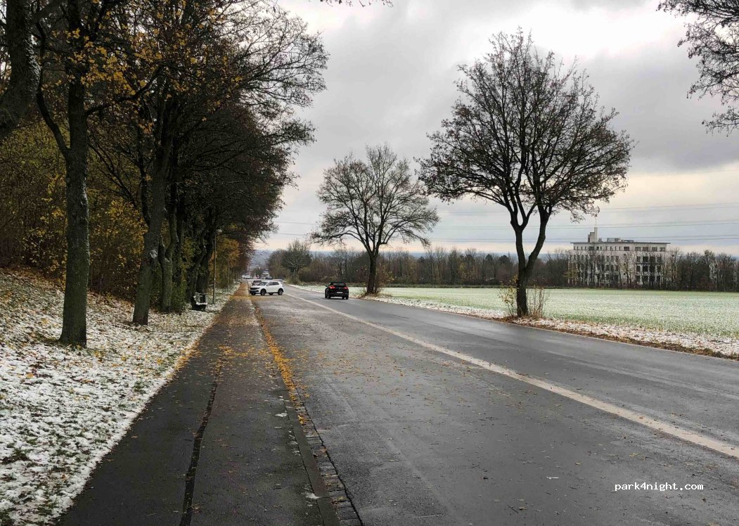 Ca 400m langer breiter Parkstreifen in der Nähe eines Sportheimes. In einer Sackgasse, deshalb wenig Verkehr. Leicht abschüssig aber nicht störend. Abends und am Wochenende kann Spielbetrieb sein